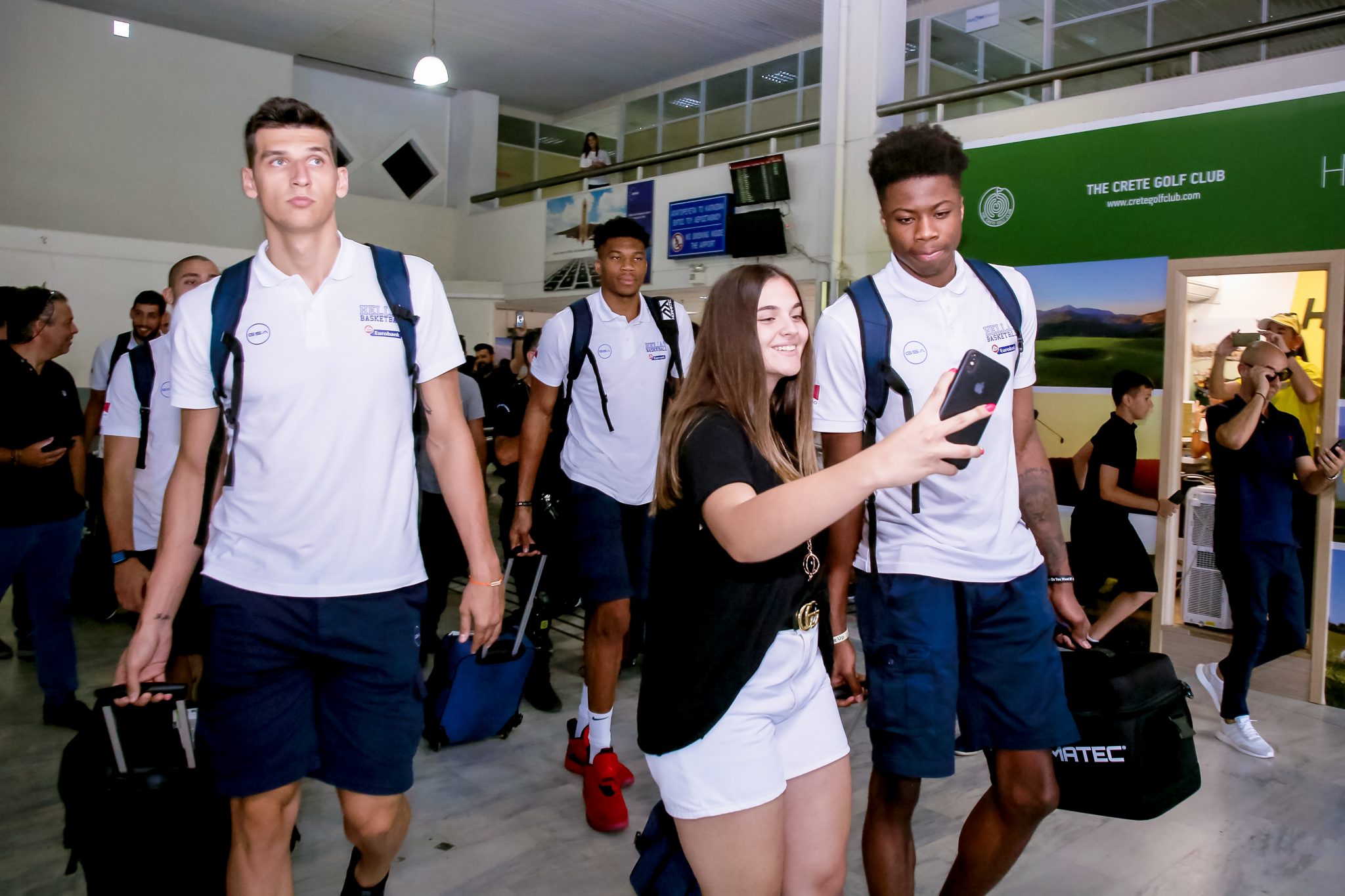 Η Εθνική Ανδρών βρίσκεται εδώ και λίγη ώρα στην Κρήτη, με τους διεθνείς μας να ετοιμάζονται για το τουρνουά «Aegean», στην πρώτη τους... αποκάλυψη μπροστά στο κοινό τους, το οποίο πάντως υποδέχθηκε θερμά τη «γαλανόλευκη», αφού ουκ ολίγοι φίλαθλοι έσπευσαν να δουν τους παίκτες του Θανάση Σκουρτόπουλου από κοντά για μια αναμνηστική φωτογραφία.