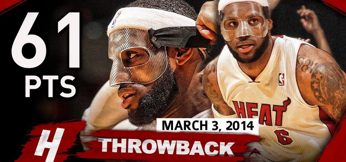 Ο «Βασιλιάς» αναγκάστηκε να αγωνιστεί με προστατευτική μάσκα στο ματς των Χιτ με τους Μπόμπκατς, αφού είχε σπασμένη μύτη. Λογικά το είδε σαν... πρόκληση αφού έκανε παιχνιδάκι στα χέρια του, τους Μπόμπκατς σημειώνοντας 61 πόντους στη νίκη των Χιτ με 124-107 στη Φλόριντ.