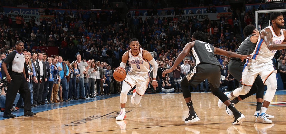 Ο Ράσελ Ουέστμπρουκ ευστόχησε σε λέι απ, 3.3’’ πριν από το φινάλε, χαρίζοντας τη νίκη στους Οκλαχόμα Σίτι Θάντερ με 109-108 επί των Μπρούκλιν Νετς στην «Chesapeake Energy Arena».