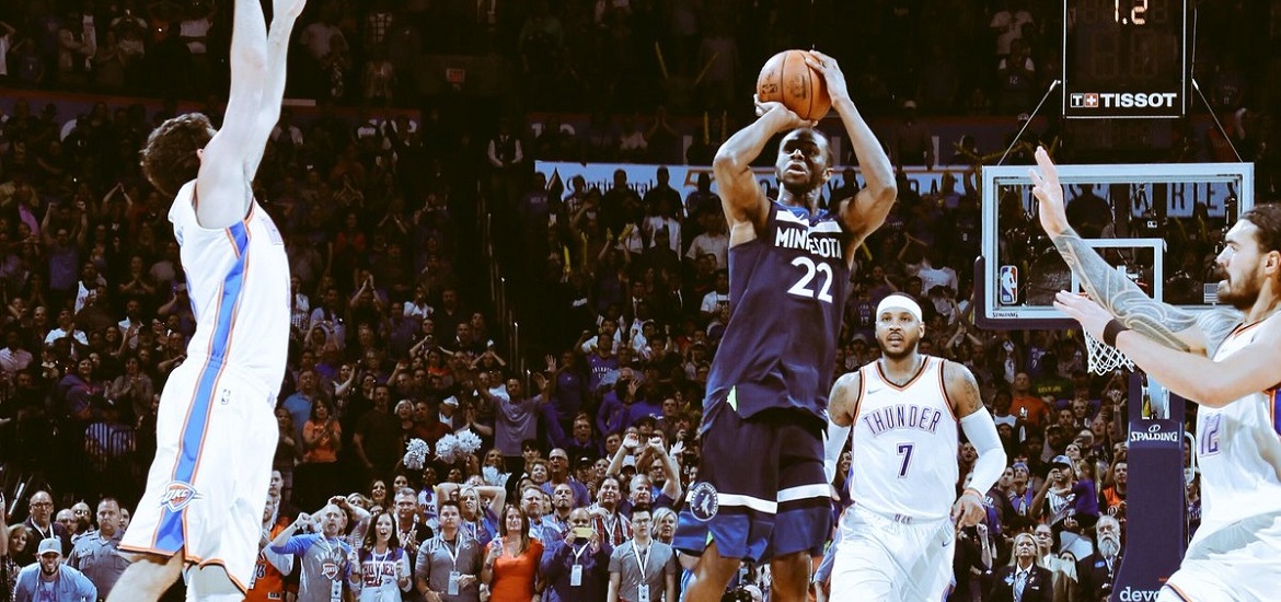 Το buzzer beater τρίποντο, με ταμπλό, του Άντριου Ουίγκινς χάρισε τη νίκη με 115-113 στους Μινεσότα Τίμπεργουλφς απέναντι στους Οκλαχόμα Σίτι Θάντερ.