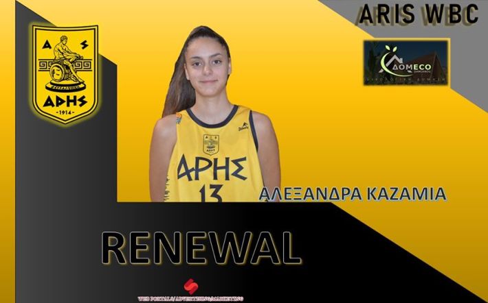 Η ανακοίνωση: «Ο Α.Σ. Άρης και το τμήμα Μπάσκετ Γυναικών ανακοινώνουν την ανανέωση της συνεργασίας με τον Αλεξάνδρα Καζαμία. Η Αλεξάνδρα Καζαμία είναι γεννηθείσα το 2003 και με ύψος 1,87μ. αγωνίζεται στις θέσεις πάουερ φόργουορντ και σέντερ. Πριν από τον Άρη αγωνίστηκε για τρία χρόνια στον Μαντουλίδη και για δύο στον ΠΑΟΚ . Πέρυσι, εκτός από τις Νεανίδες, αγωνίστηκε και στο γυναικείο τμήμα του συλλόγου με μεγάλη επιτυχία».