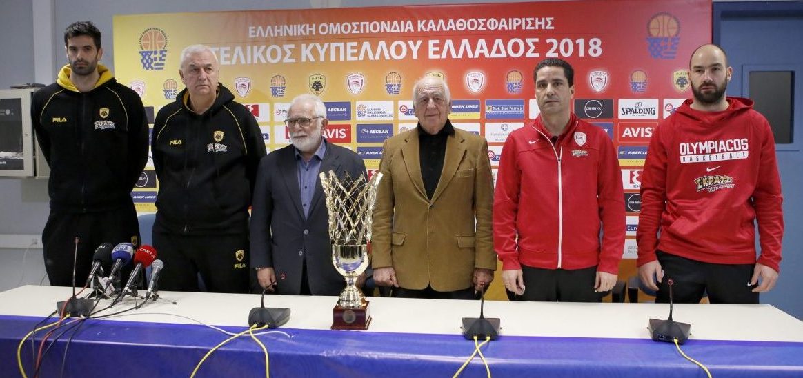 Η συνέντευξη Τύπου για τον τελικό του Κυπέλλου Ελλάδας κινήθηκε γύρω από δύο άξονες. Ο ένας αφορούσε το παιχνίδι αυτό καθ' εαυτό με τους εκπροσώπους των δύο φιναλίστ (Γιάννης Σφαιρόπουλος και Βασίλης Σπανούλης από τον Ολυμπιακό, Ντράγκαν και Ντούσαν Σάκοτα από την ΑΕΚ) να προσπαθούν να πείσουν ότι είναι έτοιμοι να διεκδικήσουν το τρόπαιο. Και ο άλλος ήταν σχετικός με την απόφαση της ΕΟΚ να επιτρέψει την είσοδο στο κλειστό "Δύο Αοράκια" του Ηρακλείου Κρήτης μόνο μαθητών από σχολεία της περιοχής και των συνοδών τους και κανενός άλλου. Οι Τάκης Τσαγκρώνης και Αριστείδης Γολέμης ανέλαβαν να εξηγήσουν και να υπερασπιστούν την απόφαση.