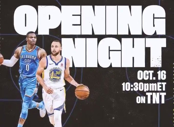 Opening Night on TNT! ??@sixers vs. @celtics - 8pm ET @okcthunder vs. @warriors - 10:30pm ET pic.twitter.com/G74U9CxCOP