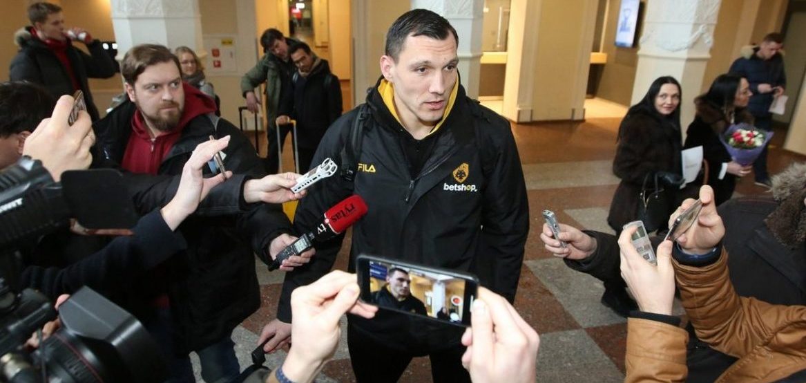 Όπως ήταν αναμενόμενο, ο Γιόνας Ματσιούλις έκλεψε την παράσταση κατά την άφιξη της ΑΕΚ στο Παναβέζις, όπου την Τρίτη θα αντιμετωπίσει τη Λιετκαμπέλις για την προτελευταία αγωνιστική της κανονικής περιόδου του Basketball Champions League. Οι Λιθουανοί δημοσιογράφοι έσπευσαν να του πάρουν κάποια δήλωση και η ιστοσελίδα krepsinis.net δημοσιεύει μια συνέντευξή του, στην οποία ο Ματσιούλις δηλώνει χαρούμενος που παίζει στην ΑΕΚ, υποστηρίζει πως η ομάδα παίζει καλύτερα με τον Θίοντορ απ' ό,τι με τον Ράταν Μίες, μιλάει για το επικείμενο φάιναλ φορ του Διηπειρωτικού Κυπέλλου και αφήνει ένα μικρό παράθυρο ανοικτό για τη συμμετοχή του με τη Λιθουανία στο "παράθυρο" του Φεβρουαρίου.