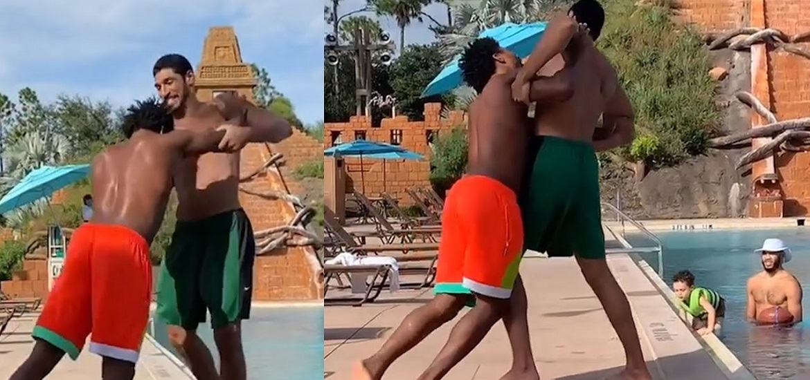 Στην πισίνα του ξενοδοχείου της Disney World του Ορλάντο, όπου διαμένουν οι Μπόστον Σέλτικς, έλυσαν τις διαφορές τους ο Μάρκους Σμαρτ και ο Ενές Καντέρ.
