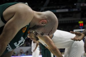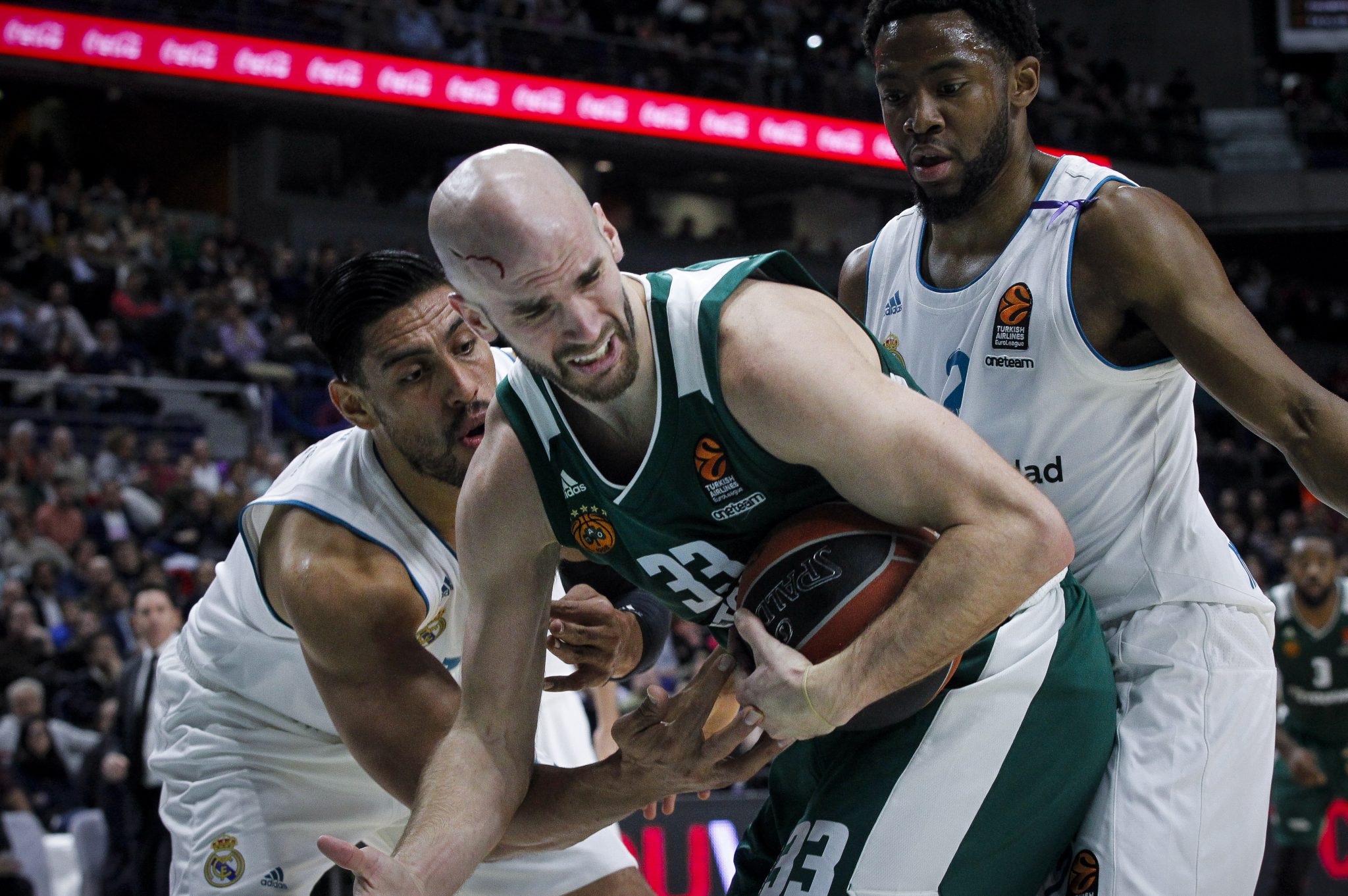 Ο Νικ Καλάθης στα μισά της δεύτερης περιόδου του αγώνα του Παναθηναϊκού με τη Ρεάλ στη Μαδρίτη, οδηγήθηκε αναγκαστικά στον πάγκο. Από ένα χτύπημα (αγκωνιά από τον Τέιλορ) στη διεκδίκηση ενός επιθετικού ριμπάουντ κι ενώ είχε κερδίσει την κατοχή της μπάλας, συνειδητοποίησε πως το κεφάλι του είχε ένα σκίσιμο. Κατευθύνθηκε στον πάγκο και στη συνέχεια στα αποδυτήρια της ομάδας, όπου δέχθηκε την περιποίηση του ιατρικού επιτελείου του Παναθηναικού.