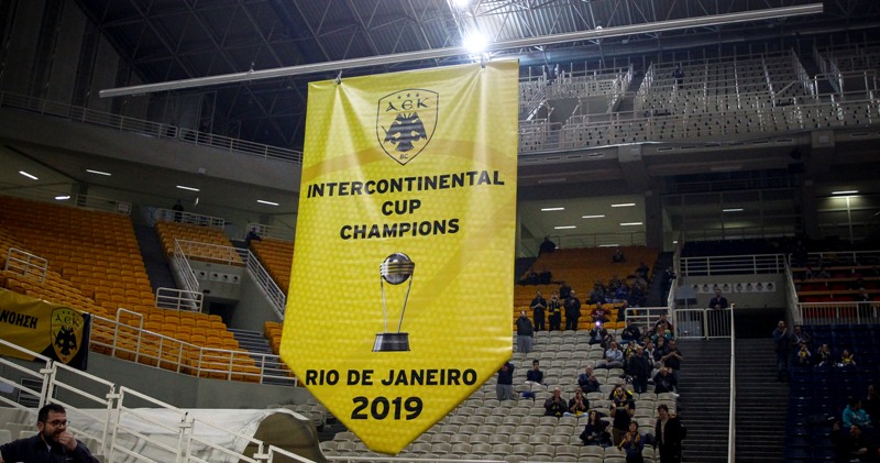 Το λάβαρο για την κατάκτηση του Διηπειρωτικού Κυπέλλου από την ΑΕΚ πήρε τη θέση του στην «οροφή» του ΟΑΚΑ, ενώ οι φίλαθλοι είχαν την ευκαιρία να φωτογραφηθούν με το τρόπαιο που για χάρη της «Ένωσης» ταξίδεψε από το Ρίο Ντε Τζανέιρο στη χώρα μας.