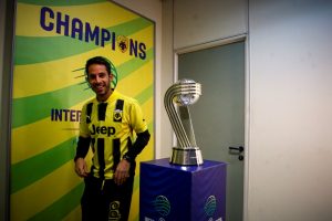 Το λάβαρο για την κατάκτηση του Διηπειρωτικού Κυπέλλου από την ΑΕΚ πήρε τη θέση του στην «οροφή» του ΟΑΚΑ, ενώ οι φίλαθλοι είχαν την ευκαιρία να φωτογραφηθούν με το τρόπαιο που για χάρη της «Ένωσης» ταξίδεψε από το Ρίο Ντε Τζανέιρο στη χώρα μας.