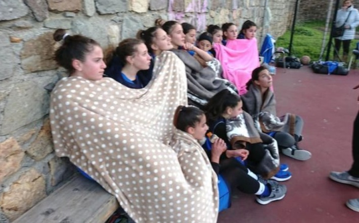 Τα κορίτσια του Ξάνθου Πάτμου επιστράτευσαν... κουβέρτες στον πάγκο τους για το παιχνίδι τους με τον Ηρακλή 2000, στο πλαίσιο του Ομίλου Νήσων του φετινού πρωταθλήματος Παγκορασίδων της Τ.Ε. ΕΟΚ Δωδεκανήσου.