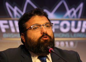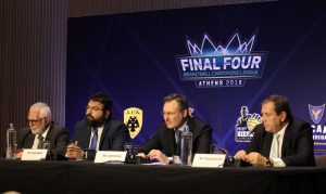 Εν συνεχεία, αποκάλυψε: «Όταν ο Μάκης Αγγελόπουλος, πριν από αρκετούς μήνες, μιλούσε για το Φάιναλ Φορ, μου έκανε πρόταση να φιλοξενήσουμε το Φάιναλ Φορ στην Ελλάδα. Η ΑΕΚ κάνει μεγάλη προσπάθεια το τελευταίο διάστημα. Απάντησα αρχικά ναι, αλλά βλέποντας και την πορεία της καταπιανόμασταν με αυτή την ιδέα να φιλοξενήσουμε ένα μεγάλο αθλητικό γεγονός. Οι μεγάλες στιγμές του μπάσκετ δεν παράγουν μόνο αθλητισμό, αλλά και πολιτισμό και πολιτική. Εμείς με μεγάλη χαρά θα συνδράμουμε να ξεπεράσουμε τα προβλήματα. Χρειάζεται δουλειά και θα την κάνουμε από κοινού. Το μεγαλύτερο βάρος πέφτει στην ΑΕΚ. Ελπίζουμε να ζήσουμε ένα μεγάλο αθλητικό γεγονός και να ζήσουμε και άλλα δρώμενα, να ανοίξουμε την κουβέντα για τον ευρωπαϊκό αθλητισμό και να καταφέρουμε μέσα σε αυτή τη γιορτή να γίνει διάλογος, για το τι αθλητισμό θέλουμε τα επόμενα χρόνια. Ευχαριστώ και τη FIBA».