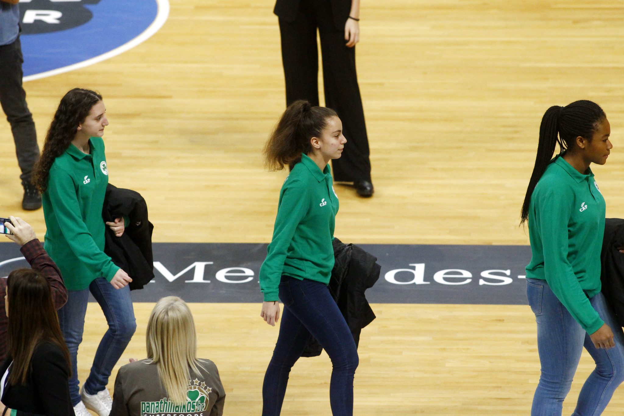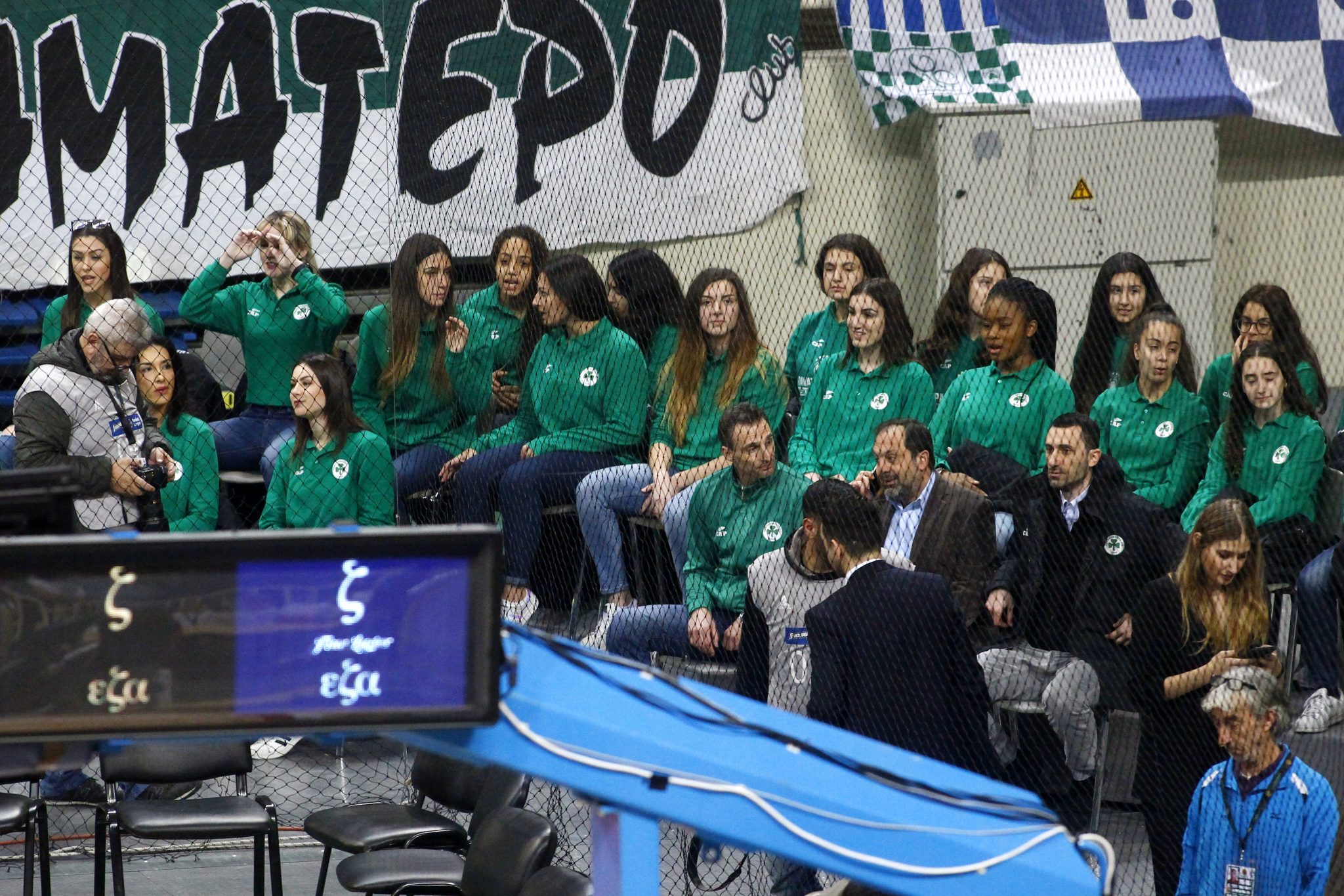 Κι αυτό, γιατί στο Κλειστό των Ολυμπιακών Εγκαταστάσεων βρίσκονται οι παίκτριες του τμήματος Γυναικών του «τριφυλλιού», καθισμένες δίπλα ακριβώς από τον πάγκο του συγκροτήματος του Τσάβι Πασκουάλ. Τα κορίτσια του Παναθηναϊκού, έδωσαν δυναμικά το «παρών» και χειροκροτήθηκαν από την εξέδρα, έχοντας περάσει μία δύσκολη εβδομάδα μετά την ήττα με 102-29 από τους «ερυθρολεύκους» στη Γλυφάδα, σε ένα ντέρμπι που οδήγησε στο «ξέσπασμα» ενός «πολέμου» μεταξύ των δύο Ερασιτεχνών, με την Χριστίνα Τσιλιγκίρη και τον επίσημο Ερασιτέχνη Παναθηναϊκό να ανταλλάσσουν «βαριές» κουβέντες.