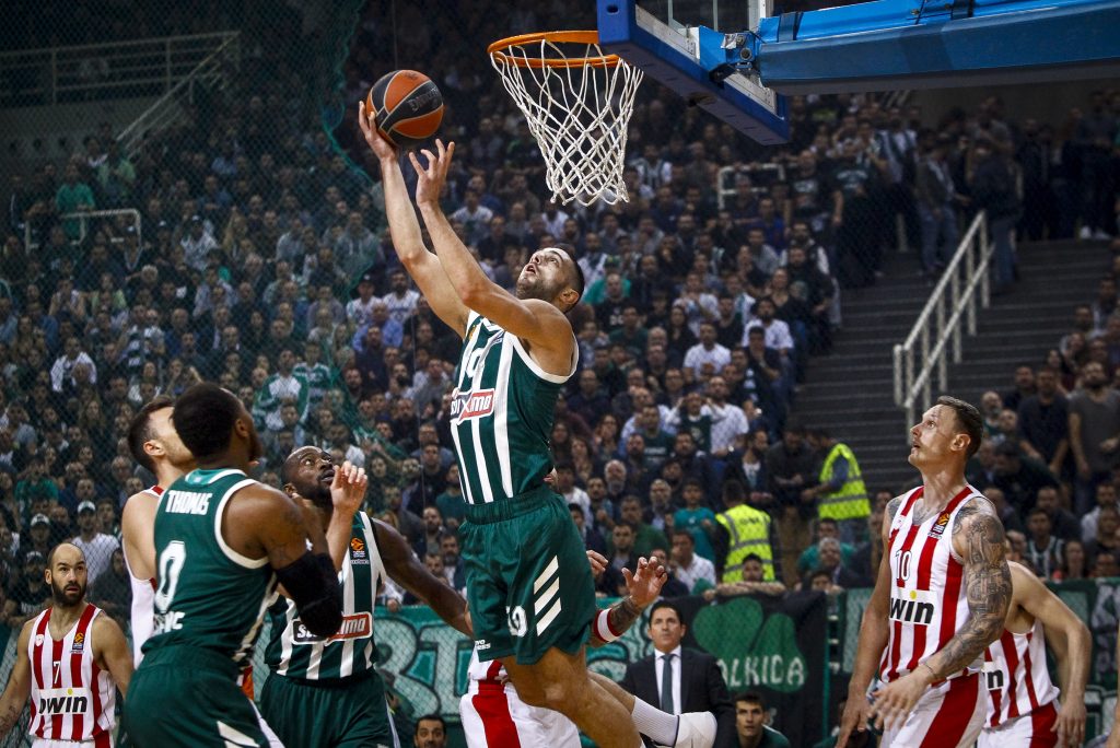 Οι «πράσινοι» πήραν πρώτοι ένα προβάδισμα (8-4, 2’28’’), έφτασαν στο +5 (17-12, 6’30’’) με τους Τόμας και Λάνγκφορντ και το 21-16 με τον Καλάθη (8’17’’). Η αντίδραση ήρθε με ένα 9-0 ως το 21-25 (10’50’’) με τον Τουπάν αυτή τη φορά σε πρώτο πλάνο. Ο Λούκας Λεκαβίτσιους μπήκε για να δώσει χρόνο ξεκούρασης στον Καλάθη, αλλά δημιούργησε προβλήματα στον Ολυμπιακό που κατάφερε όμως να σταθεί όρθιος και από το 29-29 (14’27’’) να φτάσει στο 35-44 (18’). Κι αυτό με τους «πράσινους» να βλέπουν τον Λάνγκφορντ να χρεώνεται με τρίτο φάουλ και τεχνική ποινή για διαμαρτυρία λίγο πριν από τα μισά της δεύτερης περιόδου.