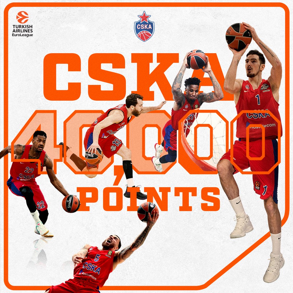 H TΣΣΚΑ Μόσχας, με τη νίκη της με 81-70 απέναντι στη Βαλένθια, στο πλαίσιο της 21ης αγωνιστικής της Euroleague, έγινε η πρώτη ομάδα που ξεπρνάει το φράγμα των 40.000 πόντων στην ιστορία της διοργάνωσης.