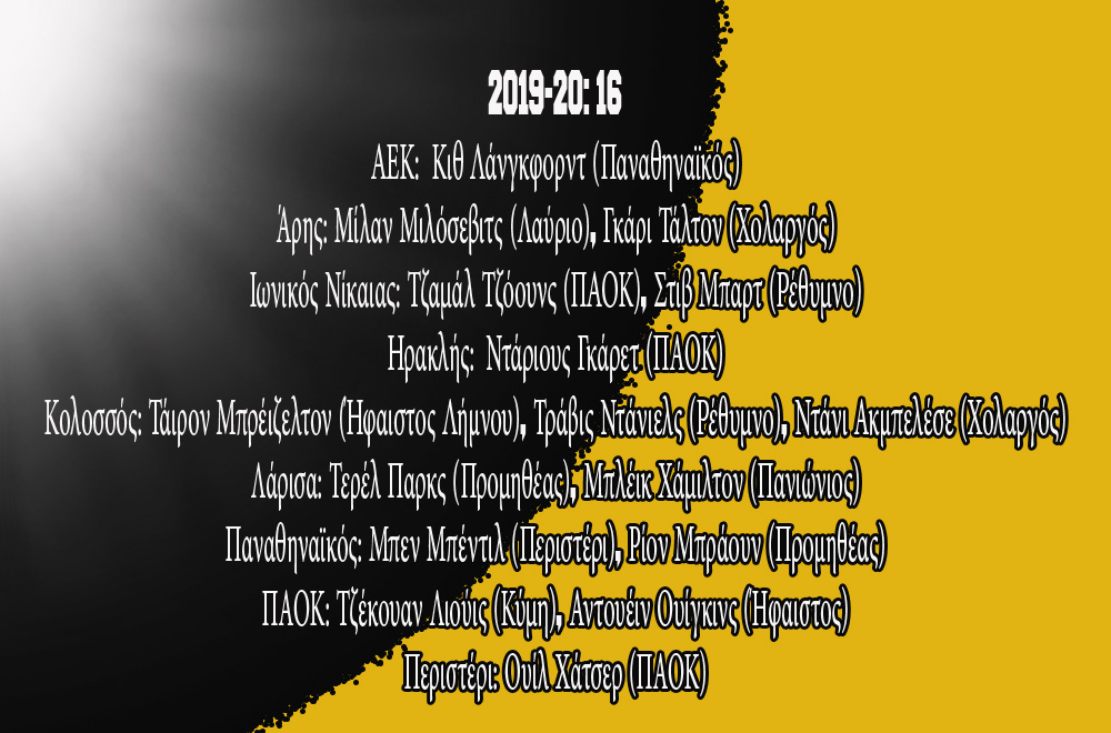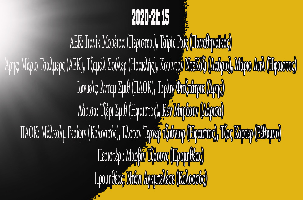 Περιστέρι: Τζος Χάγκινς (Ηρακλής), Γιανίκ Μορέιρα (ΑΕΚ).