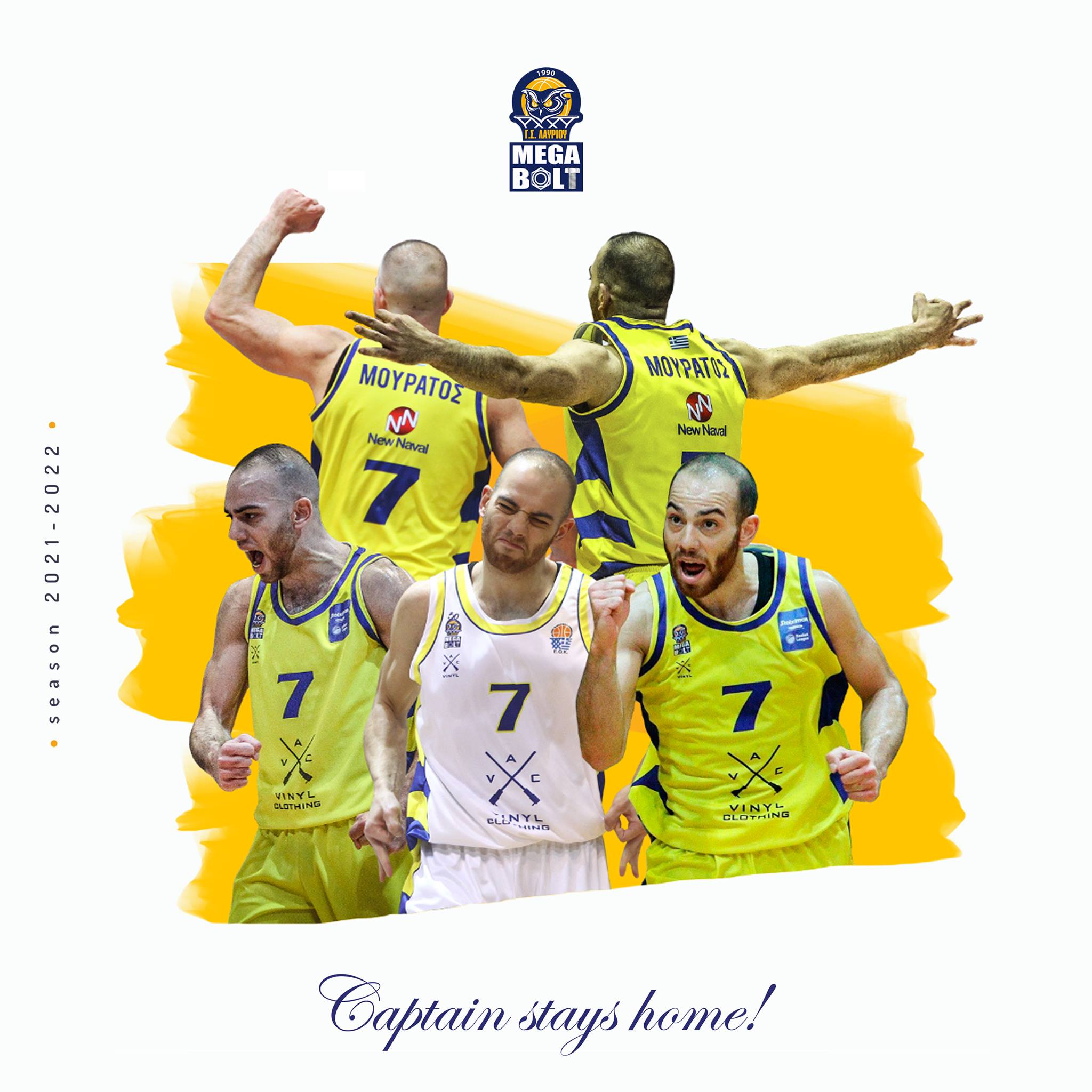 Η ΚΑΕ Λαύριο - Megabolt ανακοινώνει την ανανέωση της συνεργασίας της με τον εμβληματικό αρχηγό Βασίλη Μουράτο για την σεζόν 2021-22 συνεχίζοντας με τον πιο εμφατικό τρόπο τις ανανεώσεις της νέας χρονιάς. Ο Βασίλης θα βρίσκεται και φέτος στο ρόστερ της ομάδας μας καθώς ήταν έντονη επιθυμία τόσο του ίδιου όσο και του coach Σερέλη».