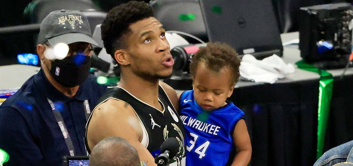 Η επί χρόνια σύντροφός του, Μαράια Ρίντλσπριγκερ, δημοσίευσε στον προσωπικό λογαριασμό της σε γνωστή ιστοσελίδα κοινωνικής δικτύωσης μια φωτογραφία από το «Fiserv Forum», με τον πρωτότοκο γιο τους. Ο Λίαμ Αντετοκούνμπο παρακολούθησε διά ζώσης την τελετή και, σύμφωνα με τη μητέρα του, αντέδρασε κάπως έτσι: «Ο μπαμπάς είναι πρωταθλητής. Δώστε στον μπαμπά μου το δαχτυλίδι του, παρακαλώ».