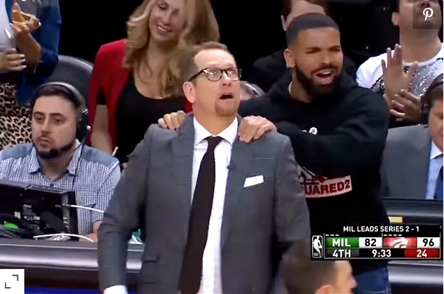 Γνωστός οπαδός των Τορόντο Ράπτορς, βρίσκεται φυσικά στην πρώτη σειρά σε κάθε παιχνίδι με τους Μιλγουόκι Μπακς, αλλά πλέον πολλοί έχουν φτάσει να ασχολούνται περισσότερο μαζί του παρά με όσους είναι εντός των γραμμών. Ουπς! Το θέμα είναι ακριβώς αυτό: Και ο ίδιος πλέον είναι συχνά πυκνά εντός των γραμμών. Όπως όταν σηκώθηκε από τη θέση του και πήγε ως τον πάγκο των Ράπτορς για να κάνει ένα... μασαζάκι επιβράβευσης στον προπονητή της ομάδας, Νικ Νερς. Δεν ξέρουμε τι άποψη έχει ο Νερς για όλα αυτά, δεν θα μπορεί και να πει πολλά προφανώς, αλλά ο προπονητής των Μιλγουόκι Μπακς, Μάικ Μπαντενχόλζερ μπορούσε.