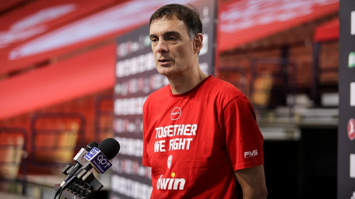 Για την Αρμάνι: «Δεν υπάρχει τσιπάκι. Υπάρχουν σχήματα με πεντάδες, ο αντίπαλος, η αυτοπεποίθηση που παίρνουν οι παίκτες μέσα από το παιχνίδι και το ομαδικό παιχνίδι. Στο 2ο ημίχρονο παίξαμε μαζί, είχαμε πολύ καλή αμυντική λειτουργία και κυκλοφορία της μπάλας. Παίξαμε ομαδικά. Ήταν μία πεντάδα που αμύνθηκε και επιτέθηκε καλά.