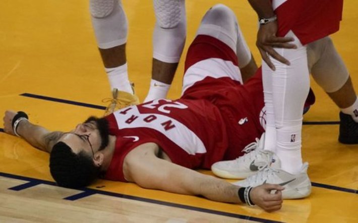 Ο Φρεντ Βαν Βλιτ αποχώρησε τραυματίας από την «Oracle Arena», πριν από το τέλος της αναμέτρησης των Τορόντο Ράπτορς με τους Γκόλντεν Στέιτ Ουόριορς, αλλά επέστρεψε με τη λήξη για να πάρει μέρος στους πανηγυρισμούς.