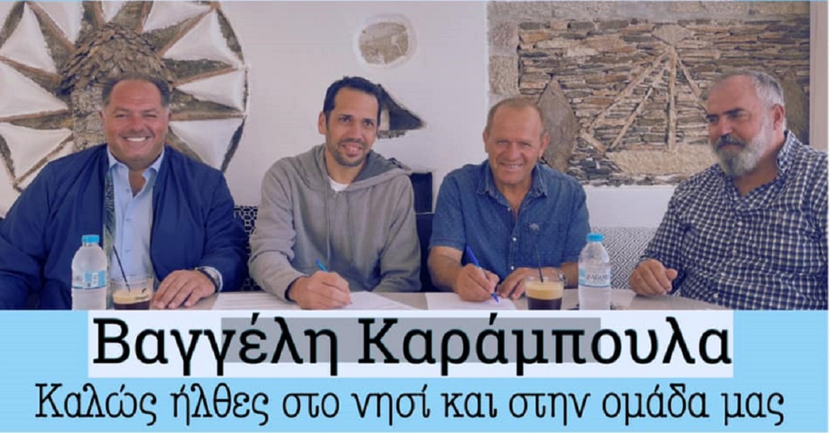 Την σπουδαία μεταγραφή του Βαγγέλη Καράμπουλα ολοκλήρωσε η Μύκονος, το οποίο είχε προαναγγείλει παρουσιάζοντας μια αφίσα με τους Βασίλη Καρρά και Σάκη Μπουλά.