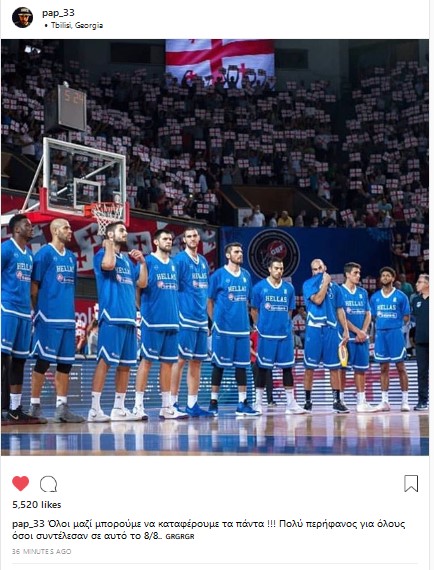 Ο ένας μετά τον άλλον όσοι παίκτες έχουν instagram ανέβασαν την δική τους φωτογραφία με το δικό τους ποστάρισμα. Αν και οι περισσότεροι επέλεξαν την ίδια φωτογραφία. Αυτή που είναι η όλη η ομάδα μαζί στην ανάκρουση του Εθνικού Ύμνου. Ίσως σύμπτωση, ίσως όχι... Δείτε τι ανέβασαν ένας προς έναν...