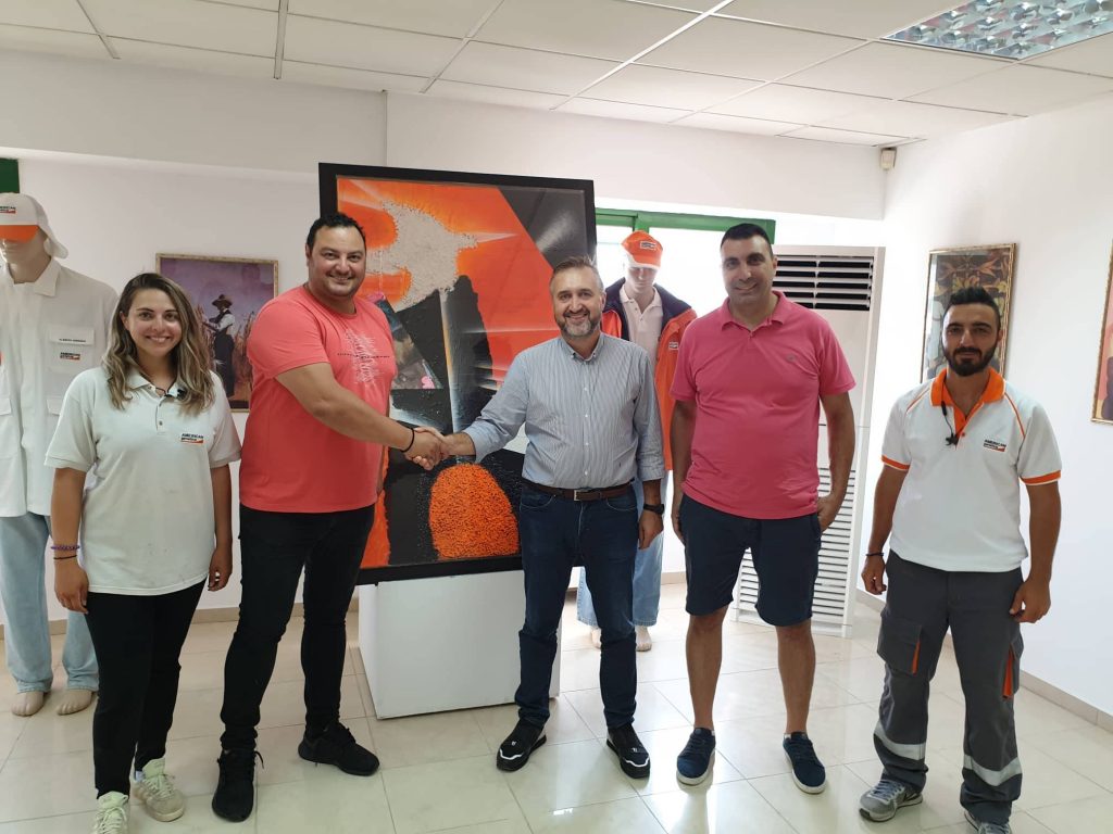 ΦΩΤΟ 02. Οι δύο νέοι χρηματοδότες του ΚΣ ΓΈΦΥΡΑΣ, με τον πρόεδρο του συλλόγου, Νούλη Μπίσκα, δευτερος απο δεξιά και στελέχη της εταιρείας».
