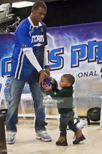 Βέβαια, ο μικρός έχει προϋπηρεσία στα παρκέ, καθώς όπως θα δείτε και στις φωτογραφίες που σας παραθέτουμε, από πολύ μικρός ο πατέρας του τον είχε από τότε στα γήπεδα:
