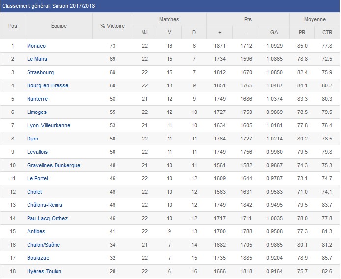Ο Κάρτερ με 22 πόντους οδήγησε επιθετικά την Λε Πορτέλ στο 84-76 επί της Σολέ, έχοντας ως συμπαραστάτες τους Γκόλντεν (17), Χάσελ (11), Χάσαντ (11) και Τραορέ (10). Ο Γκόλντεν έφτασε και σε double double με τις 10 ασίστ που μοίρασε. Ο Ρουσέλ με 20 πόντους και ο Μπουτσιέλ με 14 ήταν οι πρώτοι σκόρερ για την Σολέ.