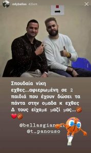 Αφιερωμένη στους δυο τραυματίες, Γιάννη Μπελλα και Θοδωρή Πανουσόπουλο, ήταν η νίκη του Ίλιον κόντρα στον ΕΦΑΟΖ. Η Ένωση πανηγύρισε το εντός έδρας αήττητο χωρίς τις υπηρεσίες του σουίνγκ γκαρντ, οι οποίος έχει κάταγμα στην μύτη και ίσως απουσιάσει και στο ματς κόντρα στον Αργοναύτη, καθώς όπως και του φόργουορντ, που βρίσκεται στο τελευταίο στάδιο αποθεραπείας χιαστού. Την αναφορά έκανε ο αρχηγός της Ένωσης Ιλίου, Οδυσσέας Μπέλλας διαμέσου του λογαριασμού που διατηρεί στο Instagram.