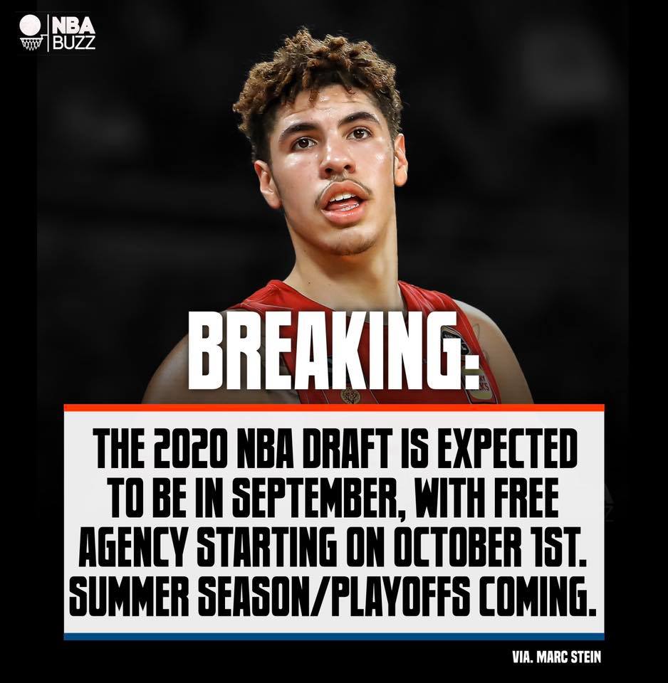 Το ΝΒΑ προχωρά και προγραμματίζει τις επόμενες κινήσεις του. Τα σημερινά νέα θέλουν το ντραφτ να διεξάγεται τον Σεπτέμβριο και τη μεταγραφική περίοδο, τη free agency, ως την 1η Οκτωβρίου.