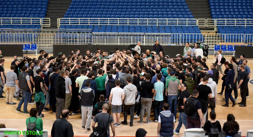 Μετά τη νίκη τους στο ΟΑΚΑ επί του Κολοσσού Ρόδου, στο πλαίσιο της 23ης αγωνιστικής της Stoiximan.gr Basket League, οι «πράσινοι» βρέθηκαν ξανά το μεσημέρι του Σαββάτου (14/04) στο κλειστό των ολυμπιακών εγκαταστάσεων και ξεκίνησαν τις προπονήσεις τους για τους προσεχείς αγώνες τους με τη «βασίλισσα» (17 και 19/04, 21.15), που θα κρίνουν την πρόκριση στο Φάιναλ Φορ του Βελιγραδίου.