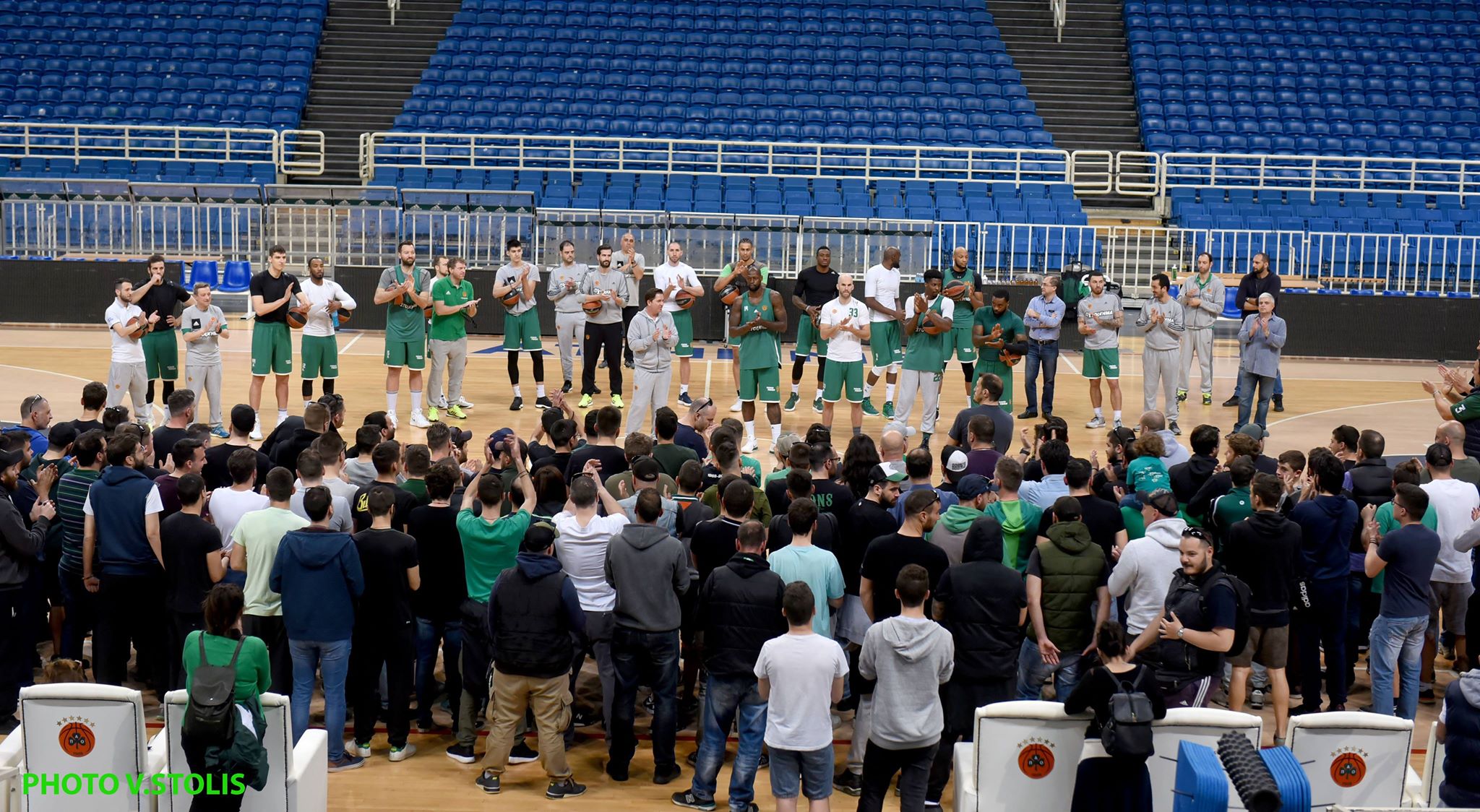 Τους παίκτες του Παναθηναϊκού ενίσχυσαν ψυχολογικά οι φίλαθλοί του, που βρέθηκαν στην έναρξη της προετοιμασίας για τα πλέι οφ της Ευρωλίγκας με τη Ρεάλ Μαδρίτης.
