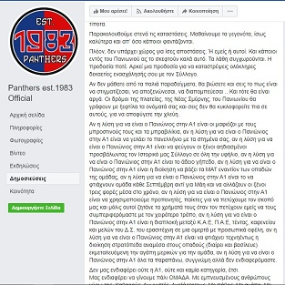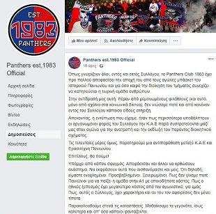 "Όπως γνωρίζουν όλοι, εντός και εκτός Συλλόγου, το Panthers Club 1983 έχει προ πολλού αποφασίσει την αποχή του από τους αγώνες μπάσκετ του Ιστορικού Πανιωνίου και για όσο καιρό την διοίκηση του τμήματος συνεχίζει να καπηλεύεται η τωρινή ομάδα ανθρώπων.