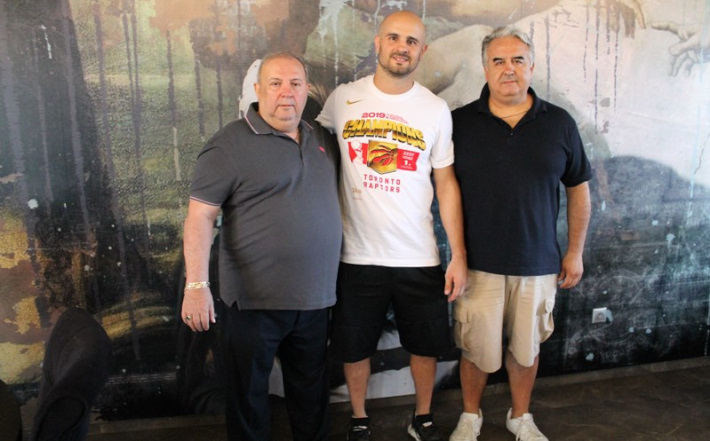 *Στη φώτο ο Νίκος Κατσαρές με τον πρόεδρο Κώστα Σκρέτα και τον αντιπρόεδρο Χριστόφορο Βουτσελά».