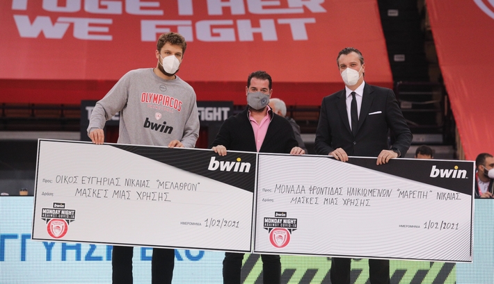 «Η ΚΑΕ Ολυμπιακός με την αμέριστη στήριξη του Μεγάλου Χορηγού της, bwin, προσέφεραν για μία ακόμη φορά μέσα από το πρόγραμμα «bwin Monday Night Against Covid-19» στην μάχη κατά του κορονοϊού.
