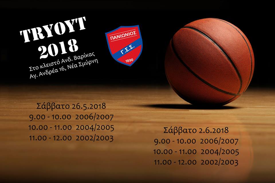 Οι Ακαδημίες του Πανιωνίου ανακοινώνουν πως θα πραγματοποιηθούν τα πρώτα δοκιμαστικά τεστ - try out (26/05 & 02/06) για τους αθλητές ηλικίας 11-16 ετών (γεννημένοι 2002 - 2007) στο «Ανδρέας Βαρίκας» στη Νέα Σμύρνη.