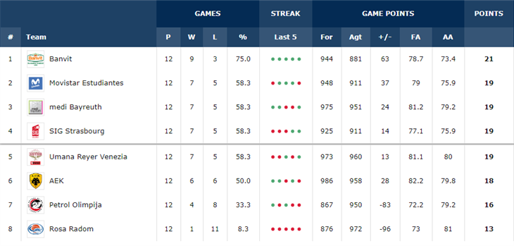 Για τα υπόλοιπα τρεις θέσεις παλεύουν πέντε ομάδες. Εστουντιάντες, Μπαϊρόιτ, Στρασβούργο, Βενέτσια (7-5) αλλά και η ΑΕΚ (6-6).