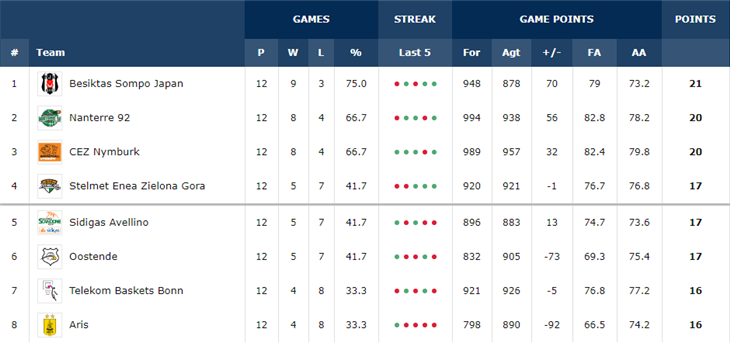 Στον όμιλο που συμμετέχει ο Άρης , τρεις ομάδες έχουν εξασφαλίσει την συμμετοχή τους στην επόμενη φάση( Μπεσίκτας, Ναντέρ και Νίμπουργκ).