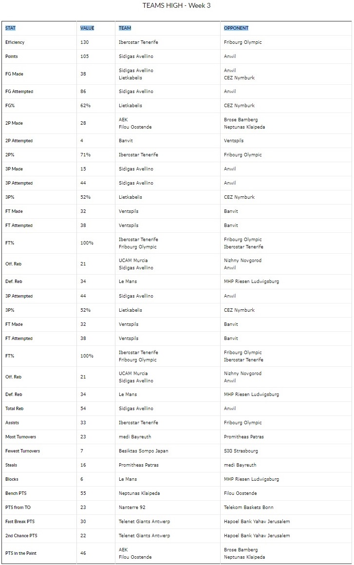 -Η Τενερίφη είχε 33 ασίστ απέναντι στη Φρίμπουργκ Ολιμπίκ, που αποτελούν φετινό ρεκόρ στη διοργάνωση.