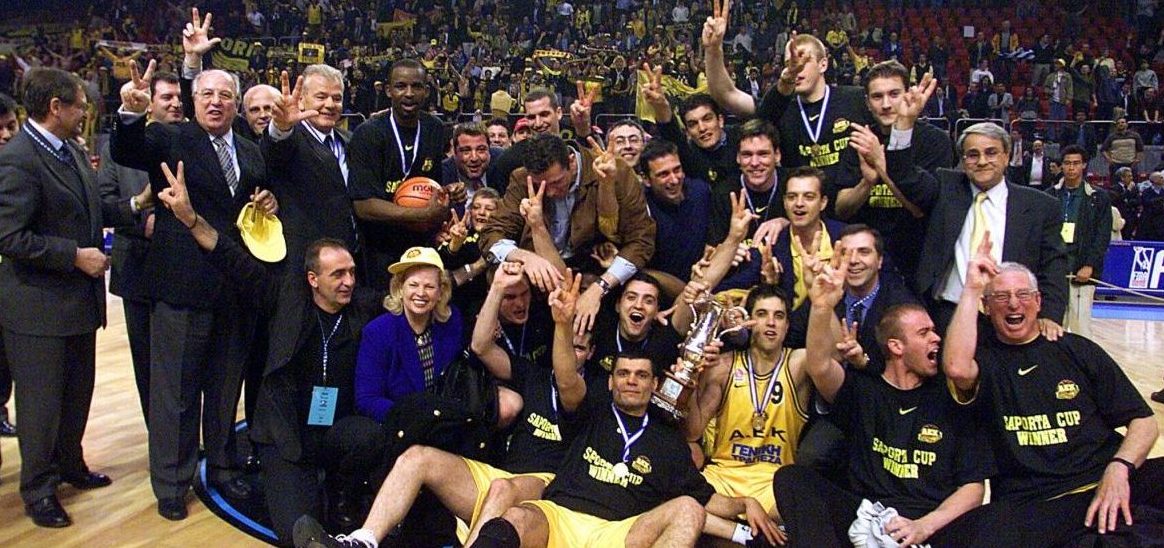 Πέρασαν κιόλας 20 χρόνια από εκείνο το βράδυ στη Λωζάνη, οπότε ο αρχηγός Νίκος Χατζής έπαιρνε από τα χέρια της χήρας του Ραϊμούντο Σαπόρτα το ομώνυμο Κύπελλο και έσπευδε στην εξέδρα να το σηκώσει μαζί με τον "Παγκόσμιο" Γιώργο Αμερικάνο. Η ΑΕΚ νίκησε με 83-76 την πανίσχυρη εκείνο τον καιρό Κίντερ Μπολόνια των Ετόρε Μεσίνα, Νίκου Οικονόμου και Πρέντραγκ Ντανίλοβιτς και στέφθηκε τροπαιούχος, εμφανίζοντας μια ομάδα με πλούσιο εγχώριο ταλέντο και με τον μεγάλο Ντούσαν Ίβκοβιτς στον πάγκο να αποδεικνύει για μια ακόμα φορά ότι μπορεί να σηκώνει κούπες με όλους τους πιθανούς τρόπους και όλα τα πιθανά ρόστερ.