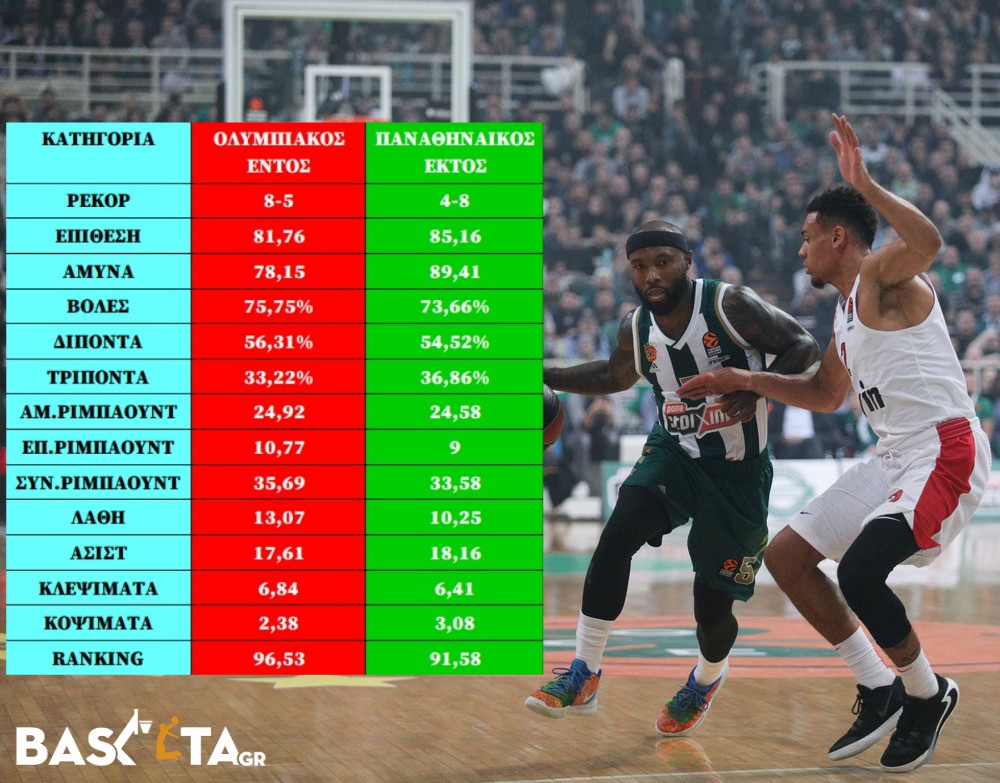 Έχει ενδιαφέρον πάντως η αντιπαράθεση των μέσων όρων των δύο «αιωνίων» με βάση την παρουσία του ενός στην έδρα του και του άλλη μακριά από τη δική του έδρα...