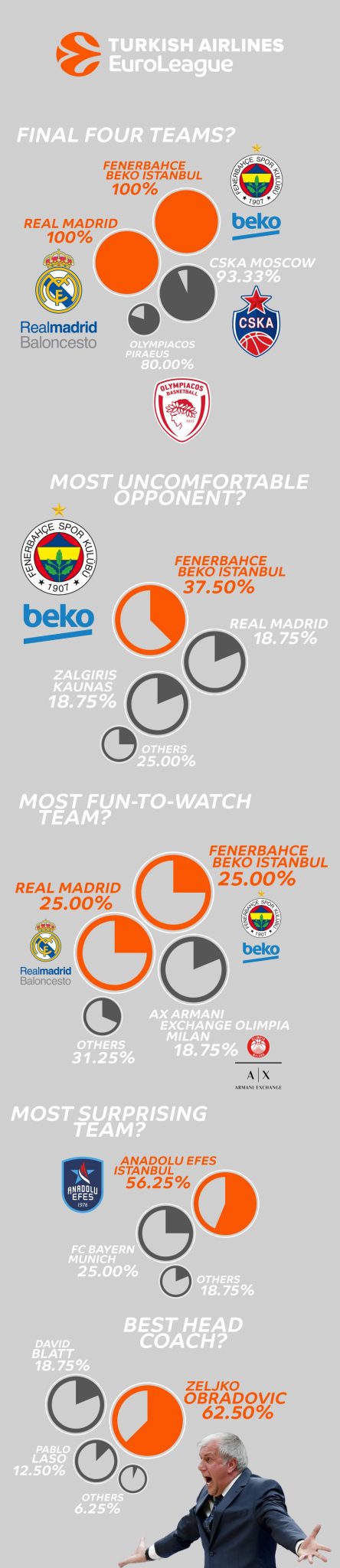 Όπως κάθε χρόνο, έτσι και φέτος μετά το τέλος του πρώτου γύρου η Ευρωλίγκα έκανε την καθιερωμένη έρευνά της μεταξύ των τζένεραλ μάνατζερ των 16 ομάδων της, στους οποίους έθεσε ερωτήματα που απασχολούν τους φιλάθλους της. Το πρώτο μέρος της έρευνας δημοσιεύτηκε και κατά την άποψη αυτών των στελεχών, που έχουν πείρα και η γνώμη τους μετράει, η τετράδα του φάινα φορ έχει σχεδόν σχηματιστεί.