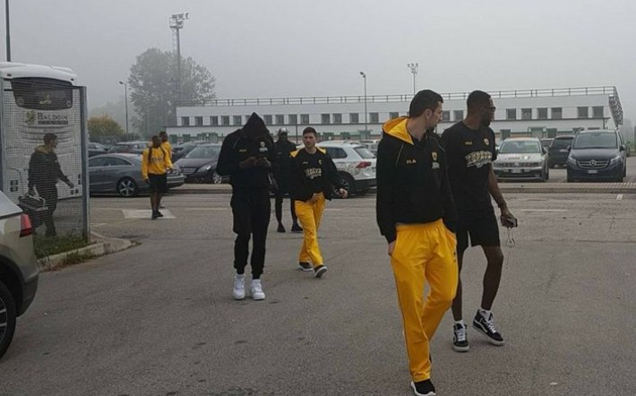 Η πρωινή ομίχλη δεν αποθάρρυνε την ΑΕΚ από τη μετάβασή της στο «Palasport Giuseppe Taliercio», προκειμένου να πραγματοποιήσει χαλάρωμα.