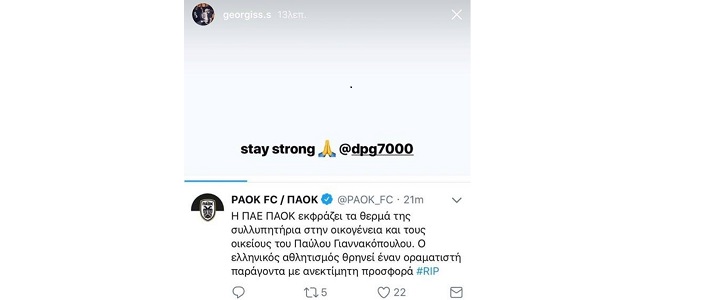 «Οι ανθρώπινες αξίες ζουν για πάντα και δεν κοστολογούνται με χρήματα . Αντίο σε έναν από τους μεγαλύτερους ηγέτες που γνώρισα με απαράβατες ηθικές αξίες .#giannakopoulos#pavlos», έγραψε μέσω Instagram ο Δημήτρης Παπανικολάου.