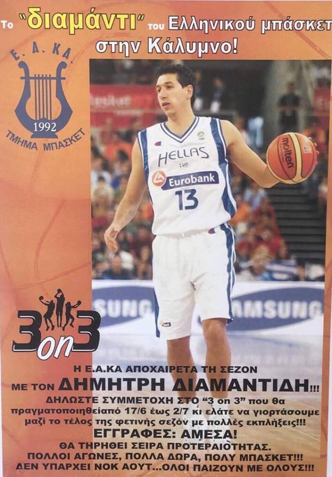 Όπως κάθε χρόνο έτσι και φέτος, η ΕΑΚΑ αποχαιρετά μια επιτυχημένη σεζόν με τους κορυφαίους παίκτες. Αυτό το καλοκαίρι όμως είναι διαφορετικό αφού στην Κάλυμνο θα βρεθεί το «διαμάντι» του ελληνικού μπάσκετ! Ο λόγος φυσικά για τον Δημήτρη Διαμαντίδη ο οποίος αποδέχτηκε την πρόσκληση της ΕΑ Καλύμνου και την Δευτέρα 2 Ιουλίου θα είναι στο νησί των «σφουγγαράδων». Με την παρουσία του «3D» θα ολοκληρωθεί και το τουρνουά «3 on 3» που είναι σ’ εξέλιξη στο κλειστό γυμναστήριο του νησιού ενώ θα υπάρξουν και πολλές εκπλήξεις.
