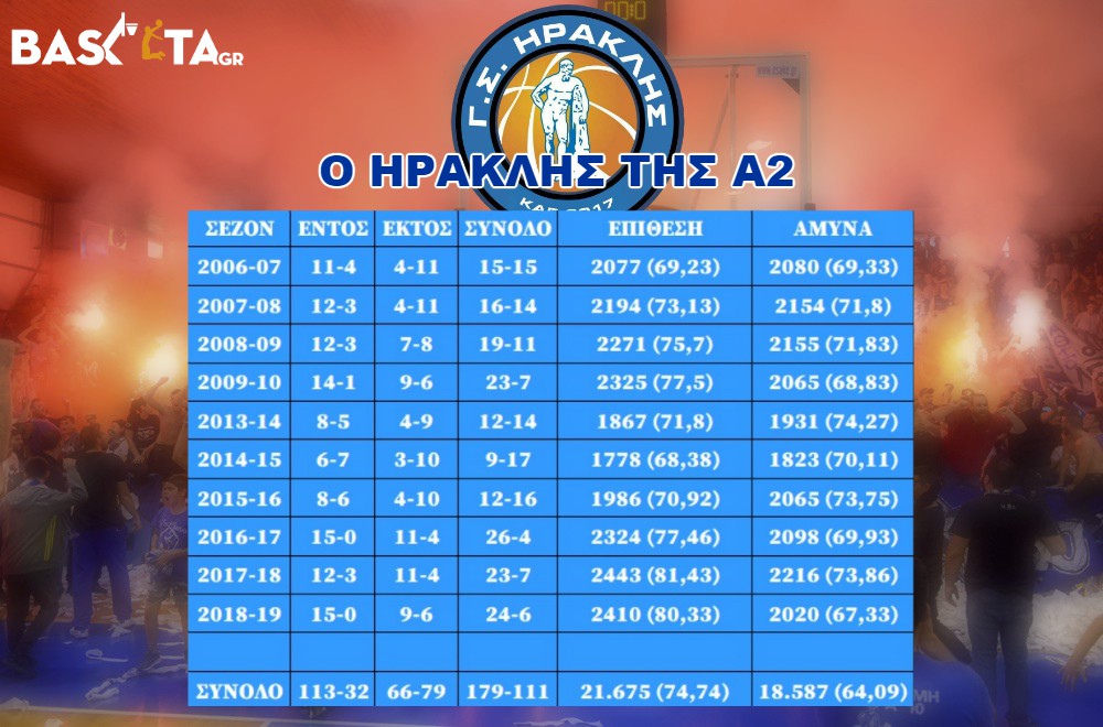 Τα έφερε μάλιστα έτσι η μοίρα, που η επάνοδος στην Basket League έγινε πράξη μέσα από το 299ο παιχνίδι του στην Α2. Από τις 30 Σεπτεμβρίου 2006 όταν ο Ηρακλής έδωσε το πρώτο παιχνίδι της ιστορίας του στην κατηγορία -ήταν μάλιστα χαμένο, αφού ηττήθηκε από τη ΜΕΝΤ με 80-71- μέχρι το χθεσινό ματς-ανόδου κόντρα στην Καστοριά και αφού πέρασε πέραν των δύο χρόνων της Β' Εθνικής (2011-13) και μία σεζόν στην Basket League (2010-11), ο Ηρακλής μέτρησε 299 λοιπόν παιχνίδια, με απολογισμό 184 νικών και 115 ηττών.