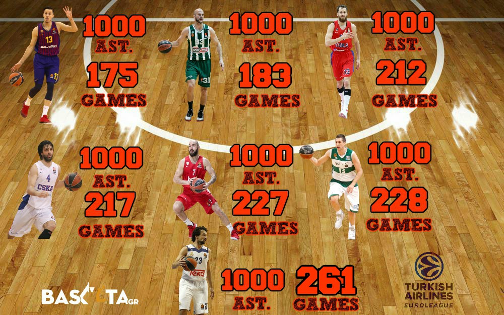 *Στην 7η αγωνιστική της κανονικής περιόδου της σεζόν 2016-17 κόντρα στην Μπαρτσελόνα, είχε γίνει “1000άρης” ο Βασίλης Σπανούλης. Χρειάστηκε 227 παιχνίδια για να φτάσει σε αυτό το επίτευγμα.