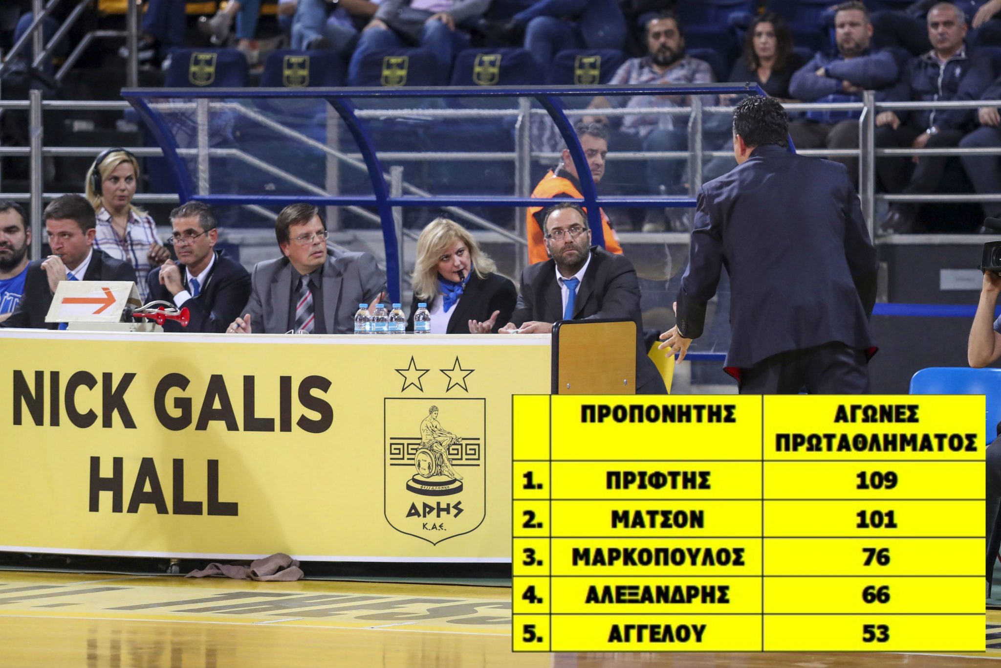 Ο Βαγγέλης Αγγέλου αποχώρησε έχοντας φτάσει πια στα 53 παιχνίδια στον πάγκο του Άρη στο Πρωτάθλημα, αριθμός που τον κατατάσσει στην 5η θέση της σχετικής λίστας στη μετά-Ιωαννίδη εποχή. Έγινε μάλιστα ο 5ος που φτάνει τα 50 ματς κανονικής περιόδου στον πάγκο του Άρη παρότι το φετινό 2-7 τον οδήγησε σε αρνητικό πρόσημο (23-27). Αναλυτικά η λίστα με τους προπονητές που μετρούν τα περισσότερα παιχνίδια στον πάγκο του Άρη στα χρόνια του επαγγελματικού Πρωταθλήματος...