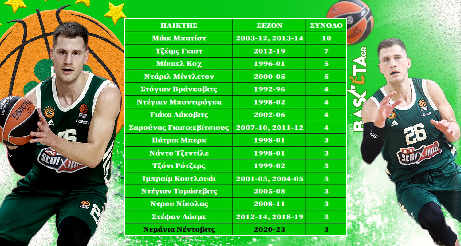 *Θα φτάσει τους 80+ αγώνες στην Ευρωλίγκα με τον Παναθηναϊκό, αριθμό που έχουν «γράψει» μόνο 14 παίκτες του.