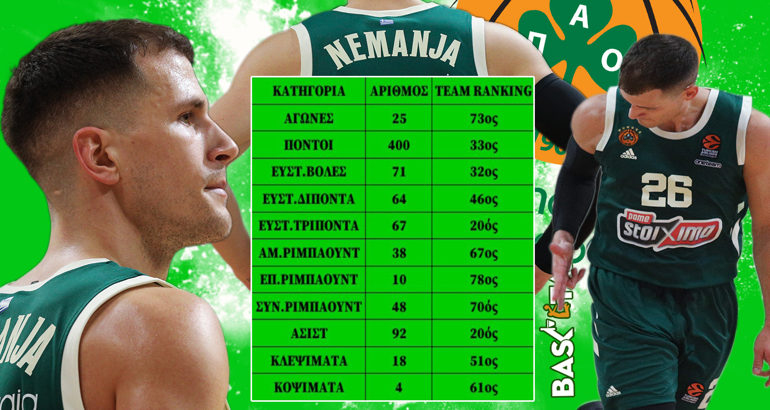 Είναι χαρακτηριστικό ότι ο Σέρβος έχει δύο από τις οχτώ επιδόσεις 40+ του Παναθηναϊκού στο ranking. Μόνο ο Νικ Καλάθης έχει επίσης δύο και από μία οι Λάκοβιτς, Φώτσης, Μήτογλου και Παπαπέτρου. Χρειάζονται άλλες εξηγήσεις για την επιλογή του Παναθηναϊκού να τον κρατήσει και μάλιστα με διετές συμβόλαιο;